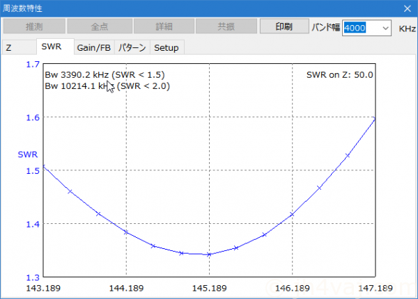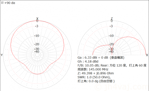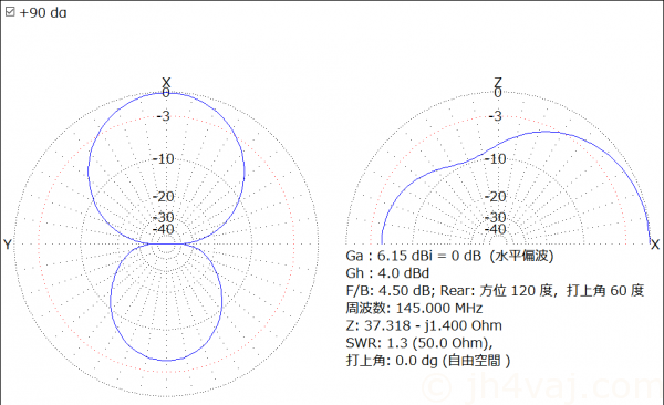 これまでは、特に深く考えることなく水平偏波でシミュレーションを行ったけど、145MHzだと垂直偏波で使うことが多い。ということで、垂直偏波でもやってみる。