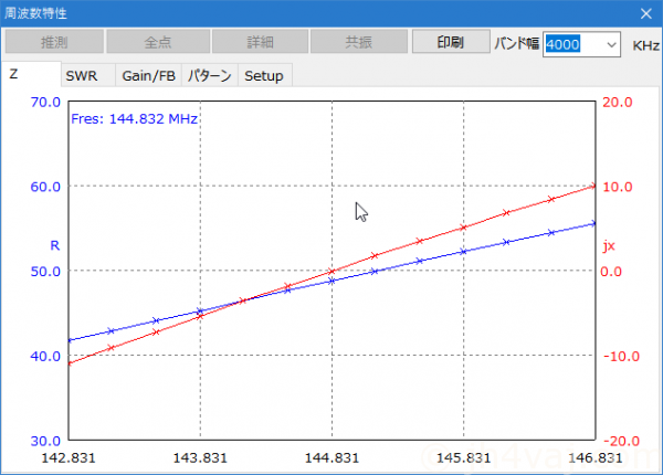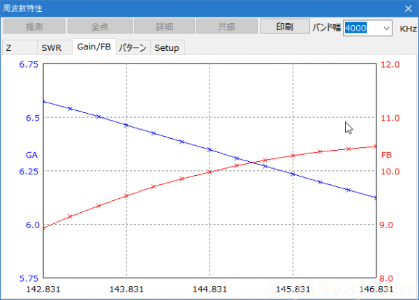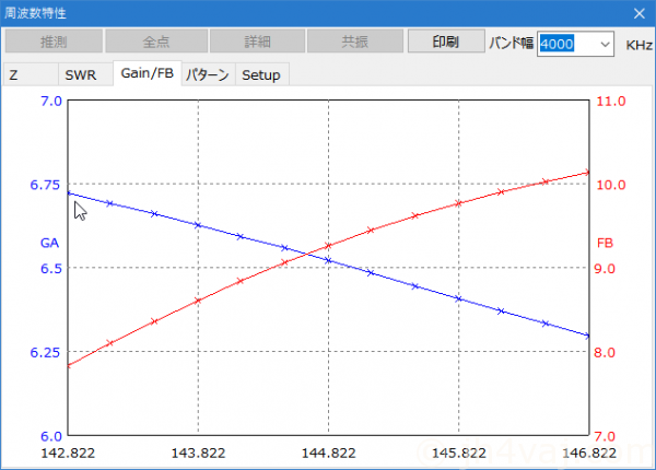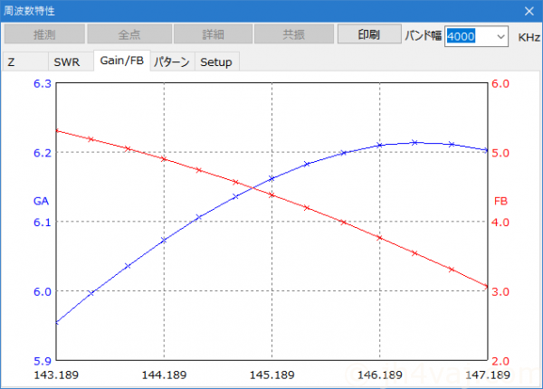頂いた寸法と、また、同様に反射器2エレでも同様な追試を行ってみました。