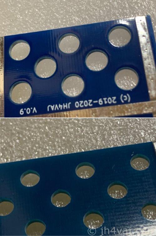 それと、レジストの厚みが違うのか、穴のエッジに丸みがある。