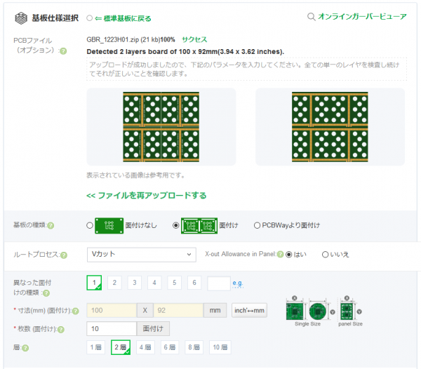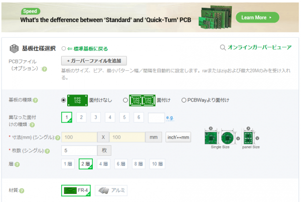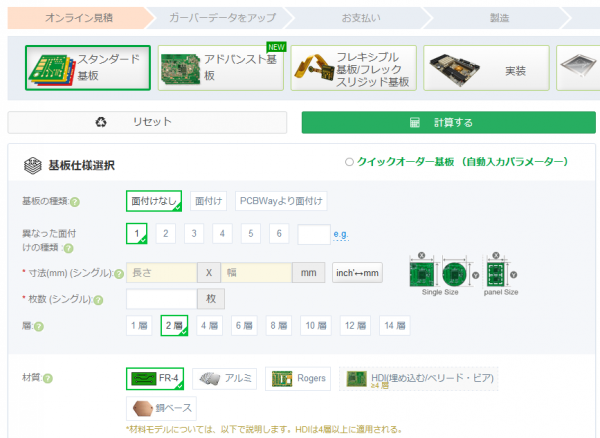 「なんだか複雑?」と思ったけど、「クイックオーダー基板(自動入力パラメーター)」をクリックしたらシンプルな画面になった。