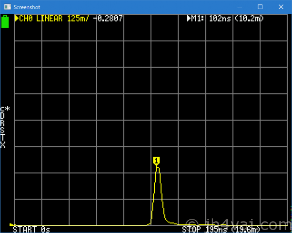 ちなみに、TDR機能で測定すると、15.2ns、1.53mと出た(この測定の前にELECTRICAL DELAYはリセット(手動で0を設定))。edy555さんからのアドバイスによれば、TDRの方が正確とのこと。