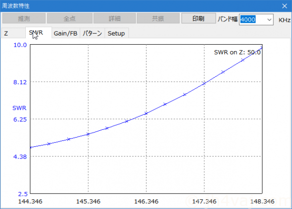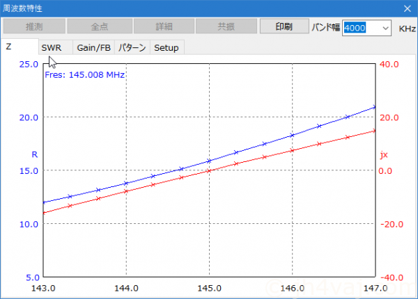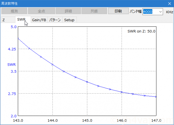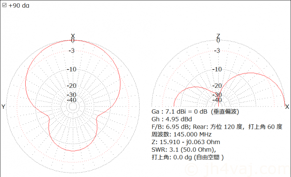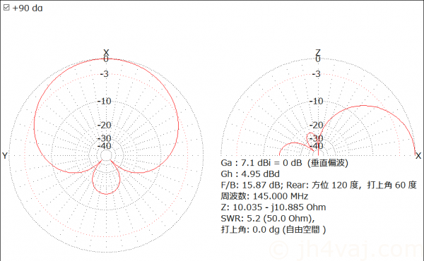 ということで、そのエレメントサイズを使って、改めてシミュレーションしてみる。今回は、最初から垂直偏波で。
