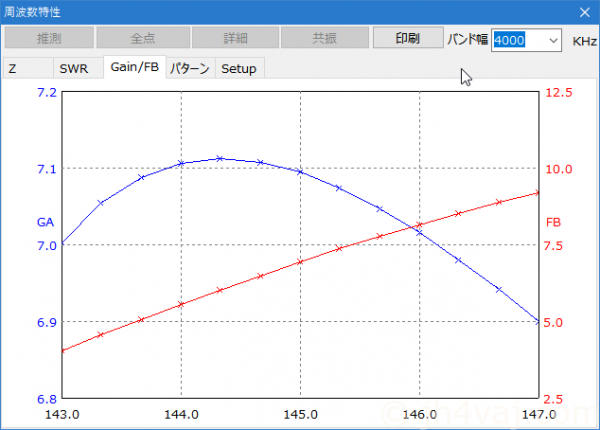前回のシミュレーションでは特別なマッチング回路を設けずに50Ωでマッチングが取れることを重視したが、その条件を外せばフロントゲインやビームパターンがかなり良くできることがわかった。