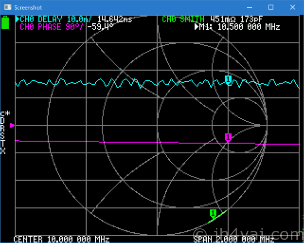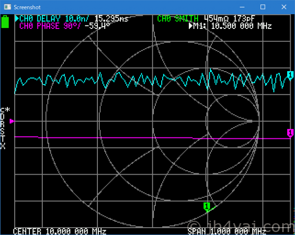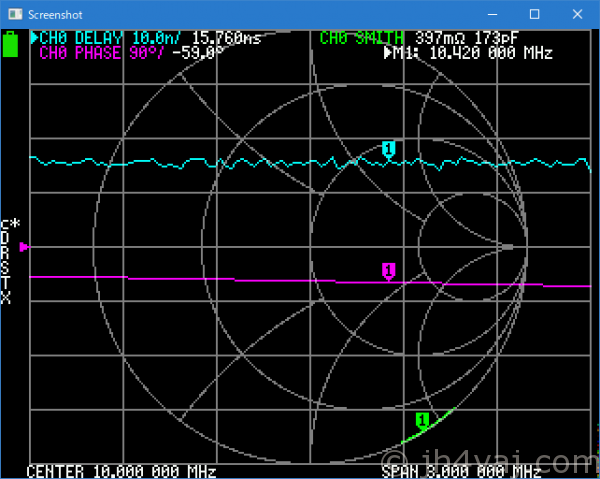 このときは、測定周波数範囲が狭い方がその範囲を細かく見られるのでいいのなかと思い1MHzの範囲にしてみた。しかし、この考え方は間違っていたようで、@edy555 さんから範囲を広げた方がディレイのグラフのガタガタが少なくなるとアドバイスを頂いた。
