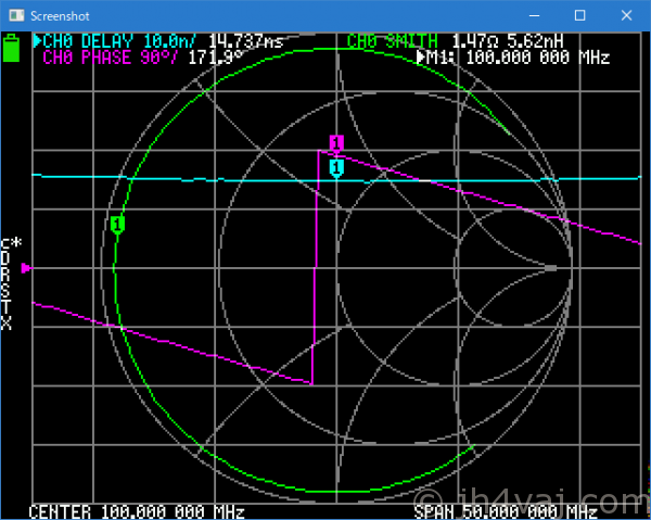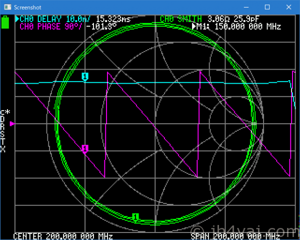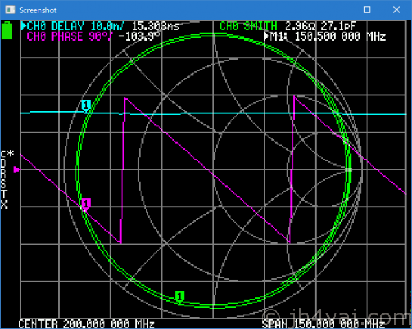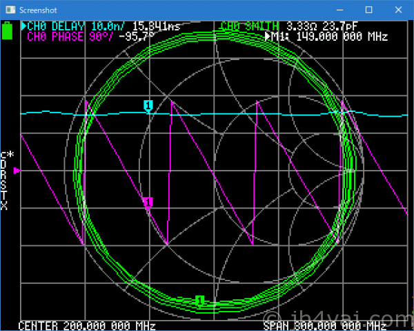 @edy555 さんから追加のアドバイスを頂戴した。スミスチャートは2~3周程度回っても良いそうだ。ただし、測定の1ステップあたり半周以下が必須。NanoVNAの測定ポイント数は101なので、ステップ数は100。つまり、測定周波数範囲/100で半周以下。