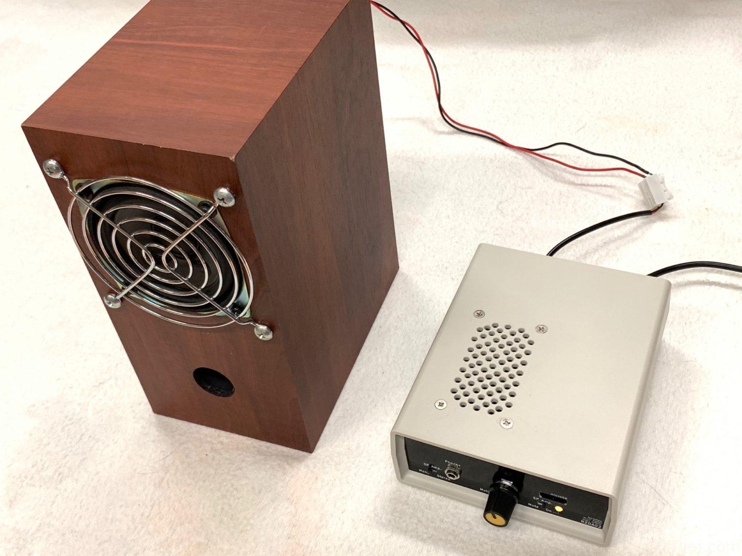 かんすぴは一台で販売されているのでモノラルで手軽に使えます。上のものはスピーカユニットはFostexのものではありませんけど(かつて秋月で格安で販売されていたものです)。スピーカグリルはファンガードを流用したものです。