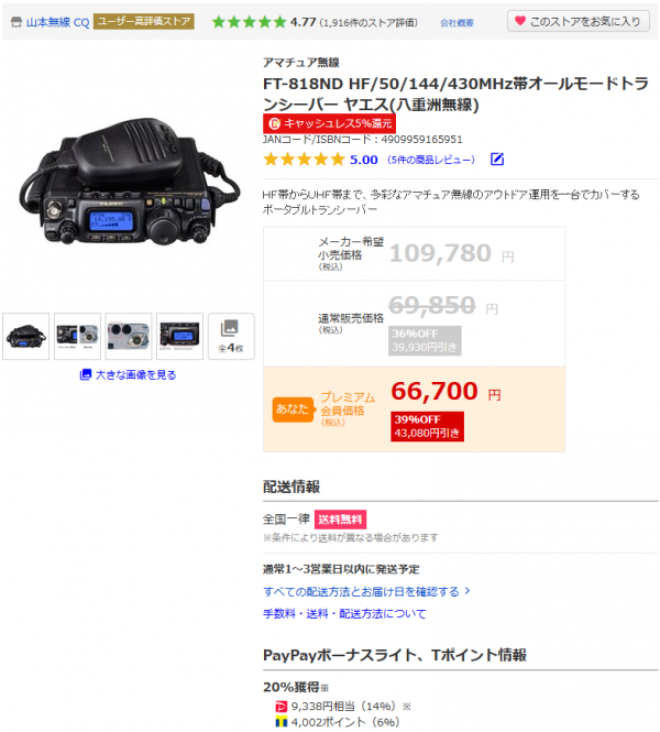 【定点観測】FT-818ND、本日のお値段