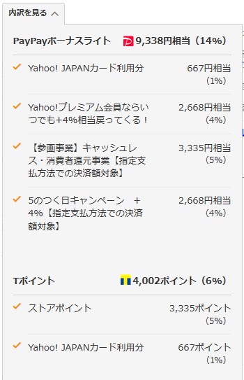 5%は3,335円。このポイントが付かなくなってしまうと、7月からは実質価格が56,695円ってことになってしまう。結構大きい。