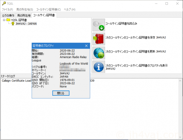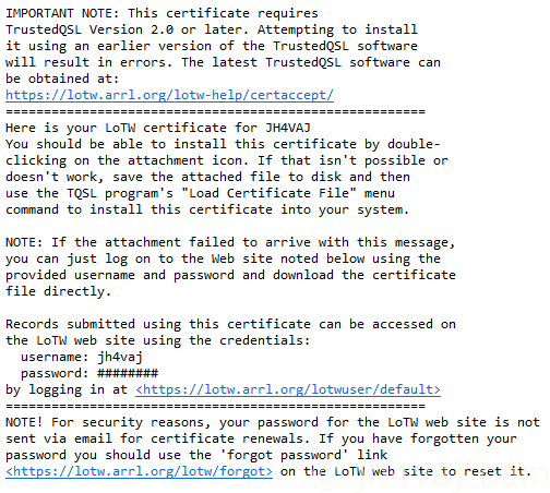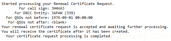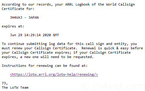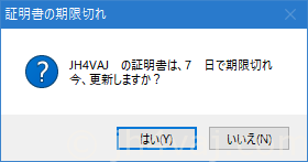 TQSLを起動すると証明書期限切れが近いとのウィンドウがポップアップするので気にはなっていたのだけど、放置していたらメールでも連絡が来た。