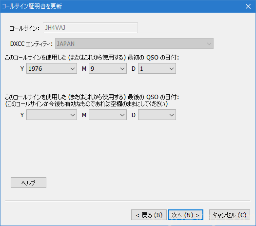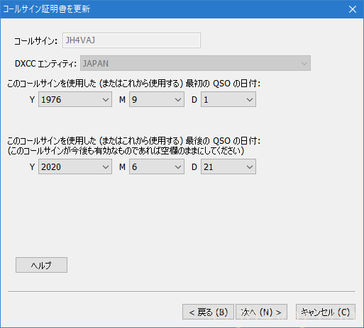ここで、「最後のQSOの日付」のところが、これを起動しした日(つまり、その時点での「今日」)が自動で入っている。これを空欄にするのがミソ。