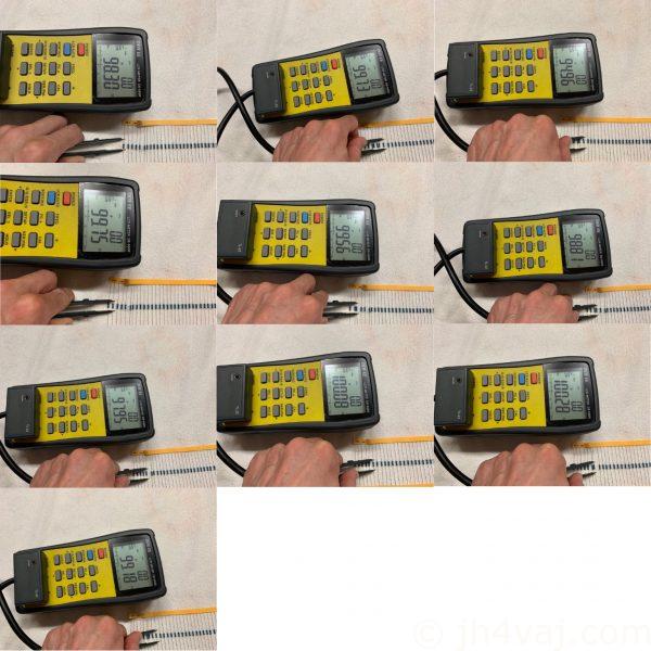 恣意性を避けるため、端から10本、測定してみた。仕様は、金属皮膜抵抗 100Ω 1% 1/4W。