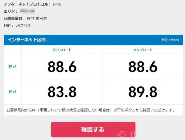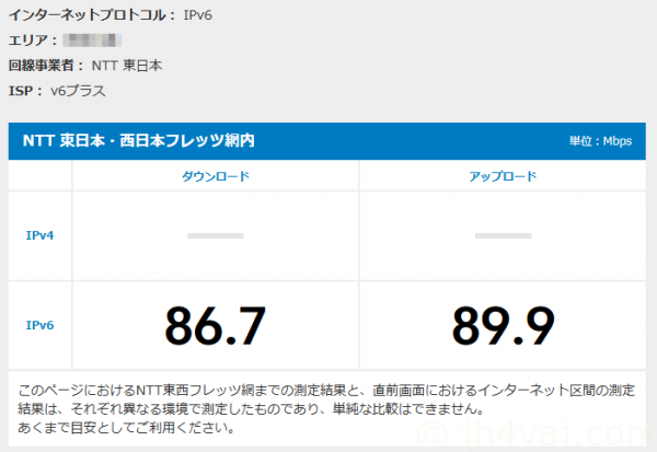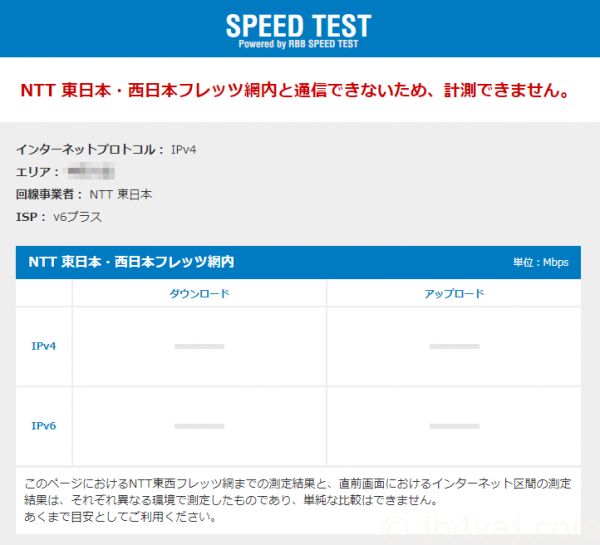 なお、この速度測定は、IPv4 over IPv6では利用できないみたい。こうなる。