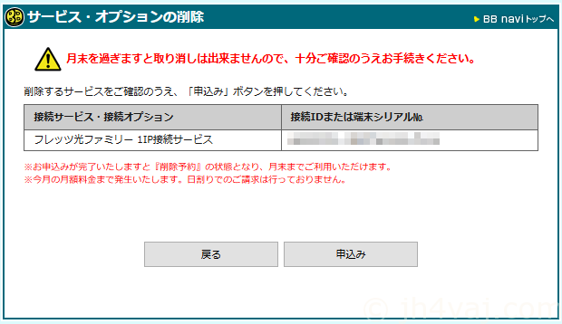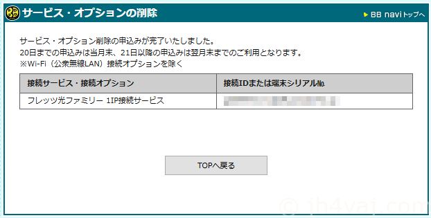v6プラスでつながるようになったので、忘れずにこれまでの接続サービスを解約しておく。BB naviでの操作。