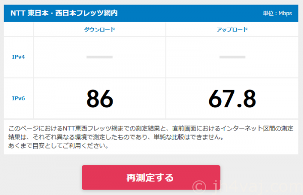 ちなみに、フレッツの速度測定サイトではこんな感じ。