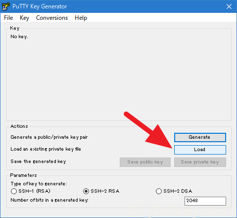 ConoHa WINGで生成したプライベートキーを、PuTTYが扱える形式に変換する。そのために、puttygenを起動する。