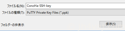 適当なファイル名を付けて(ここでは、ConoHa-SSH-keyとした)、「保存」する。