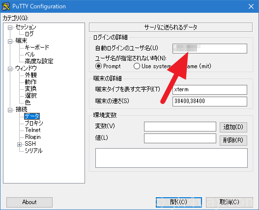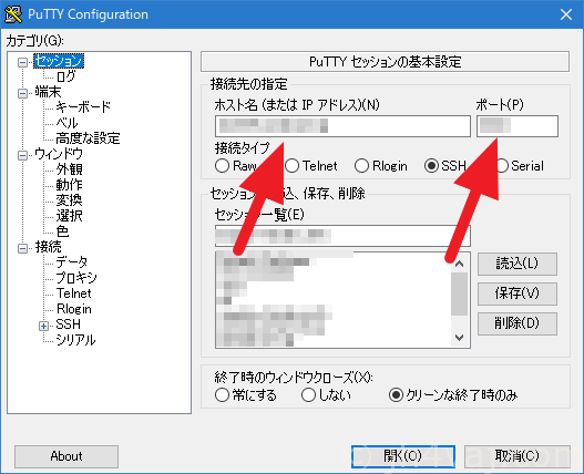続いて、クライアント(PuTTY)に接続設定を行う。