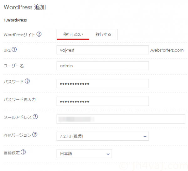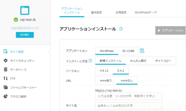 引越し先用に空のWordPressを準備する。もちろん、上で設定したドメインに。
