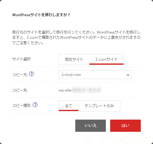 上の提案を受けて、別ドメインへの引越しを行ってみた。「引越し」というよりも、この段階では「サイトコピー」と言った方が適切か?ConoHa WINGには「かんたん移行」という機能がある。サイト作成の際にこれを指定すると引越し元サイトを丸コピーしてくれる。