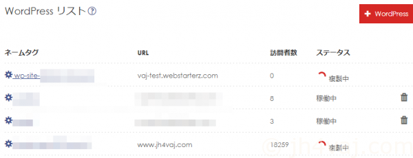 これで「はい」を押せばサイトがコピーされる。WordPressリストに戻って見ると、コピー元とコピー先のステータスが「複製中」になっている。