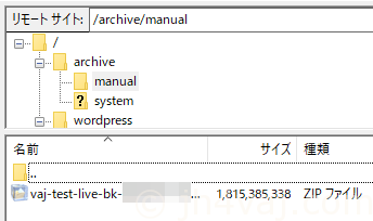 できあがったZIPファイルをFTPでダウンロードする。ここでどのみちSFTPアカウントが必要になるので、先程作ったのは無駄じゃない。