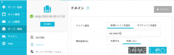 - 実験用のドメインを取得(ネームサーバはZ.com WPに向ける)。