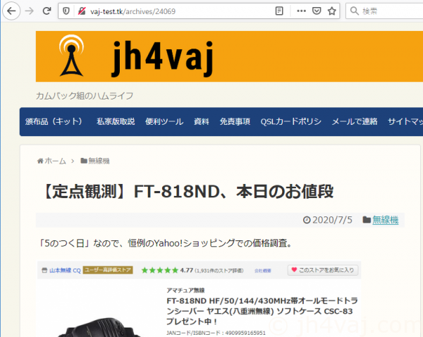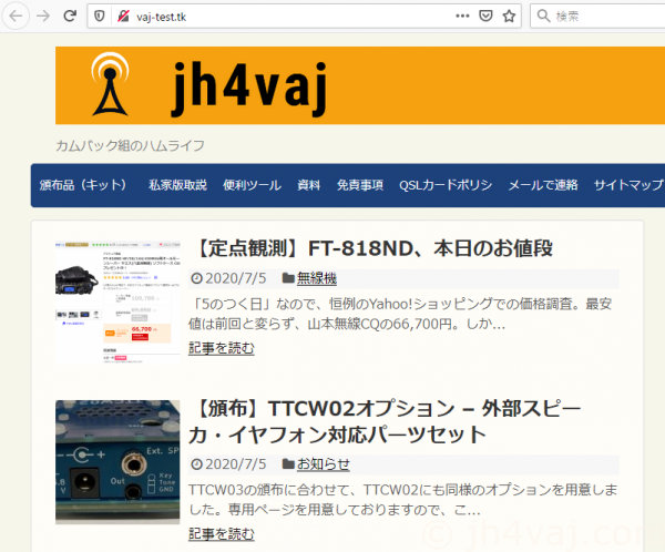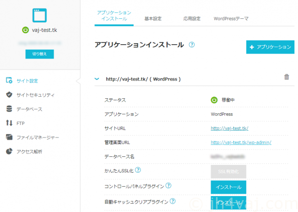 この段階で、テストサイトを開いたり、管理画面にログインしたりして、普通に使えることをチェック。