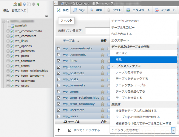 「構造」タブを開き、一番下の「すべてチェックする」にチェックを入れる。その後、右クリックでメニューを開いて「削除」を選択。確認画面が出るので、内容を確認して進める。