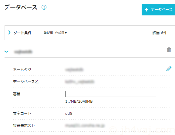 データベースのアクセスに必要な情報は、管理画面から取得できる。