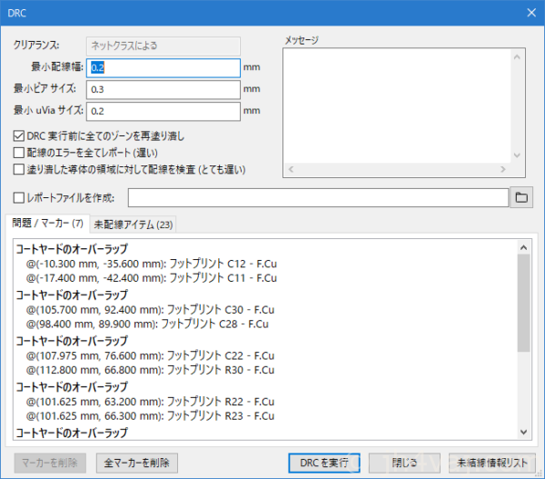 基板のDRCを走らせると、「コートヤードのオーバーラップ」が大量に報告されて鬱陶しい。