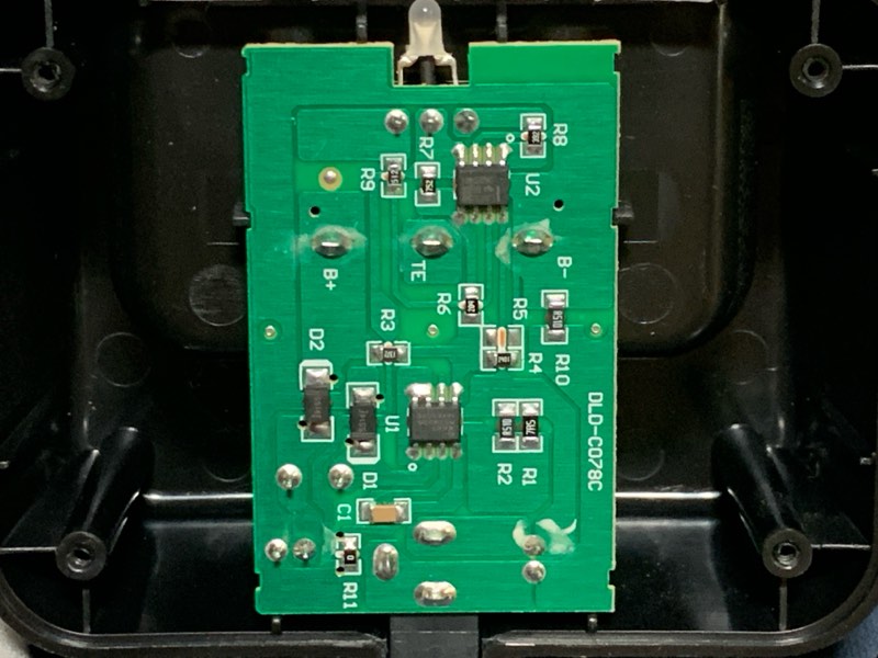 充電器のDCジャックは2.1/5.5mmの極一般的なもの。センタタップ。ということは、付属のACアダプタ以外でも大丈夫そう(スタンド内で所定の電圧にしてくれるのだから)。もちろん、自己責任ってことになるが。 DC-DCコンバータチップの発熱が大きいことがわかった(手で触るのは数秒が限界)。スイッチング式なので入力電圧の違いによる影響は大きくはないだろうとは思うが、付属のACアダプタ以外を使って事故が起きると大問題なので、それはやるべきではない。