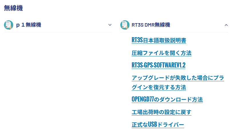 ページを下がっていって、「無線機」の中に「RT3S DMR無線機」があるので、これを開くと下のようになる。