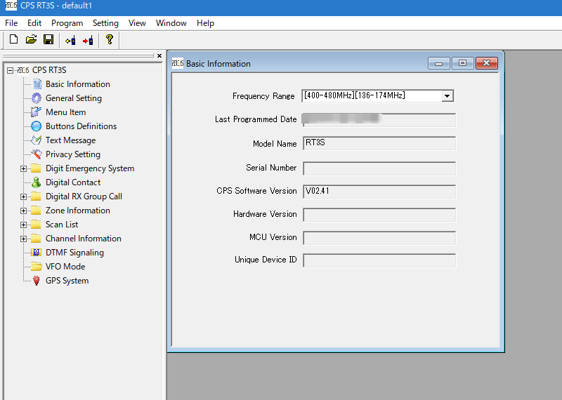 CPS RT3Sというツールが立ち上がる。Customer Programming Softwareというものらしい。