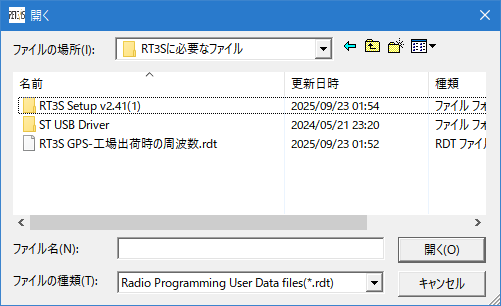「RT3S GPS-工場出荷時の周波数.rdt」を選択して読み込む。これで、「初期状態」がセットされる。