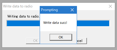 データ書込み用のウィンドウがポップアップする。「OK」ボタンを押せばデータが書き込まれる。