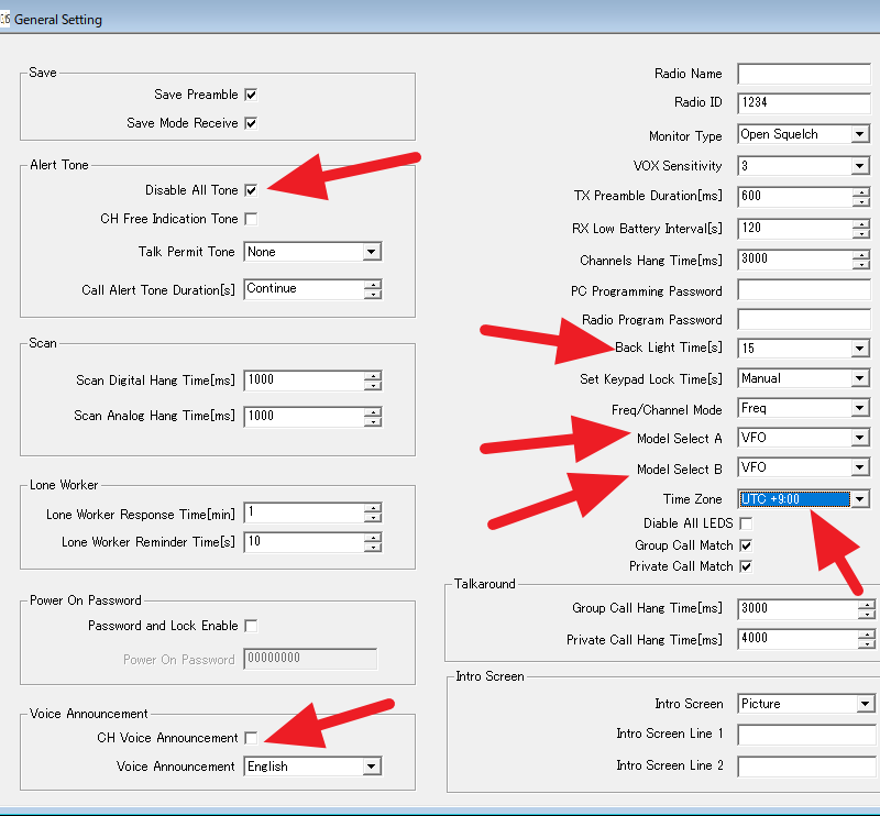 また、チャネルモードで、チャネル番号をいちいちアナウンスされるのも鬱陶しいので「CH Voice Announcement」のチェックを外す。