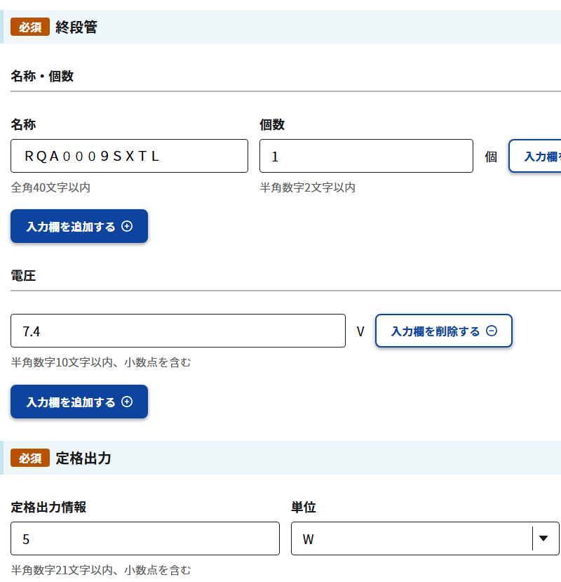 申請に必要な諸元については、RT3Sの販売ページに記されている。