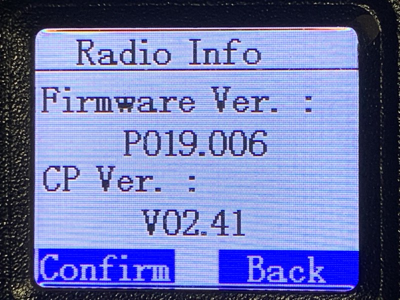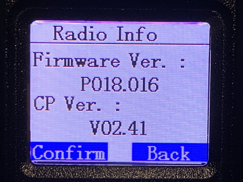 まず、現状のファームウェアバージョンを確認。Menu → Utilities → Radio Info → Versions とたどる。