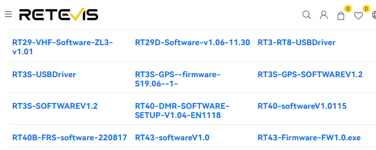新しいファームウェアはRetevisのサイトで配布されている。