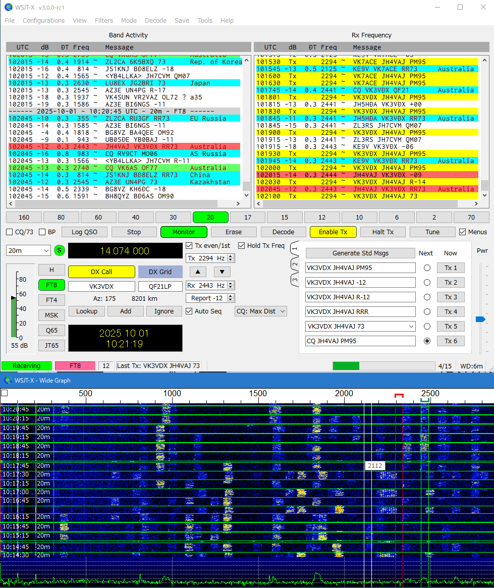 WSJT-X 2.7.0をしばらく使っているので、そろそろ2.7.1とか出ているんじゃないかと思って公式サイトを見てみたら、3.0.0-rc1が出ていた(2.7系は2.7.0のまま。よっぽど安定しているのだろう)。
