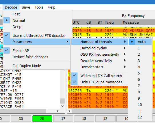 それから、多分最大のアップグレード内容がFT8のデコード性能の強化。マルチスレッドに対応した。