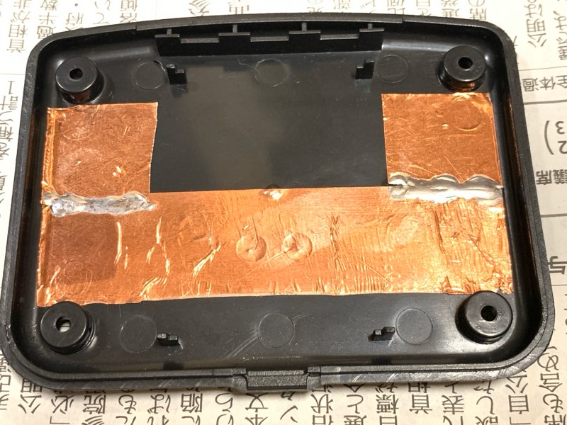 といっても単純な話で、底板に銅箔テープを貼るだけ。