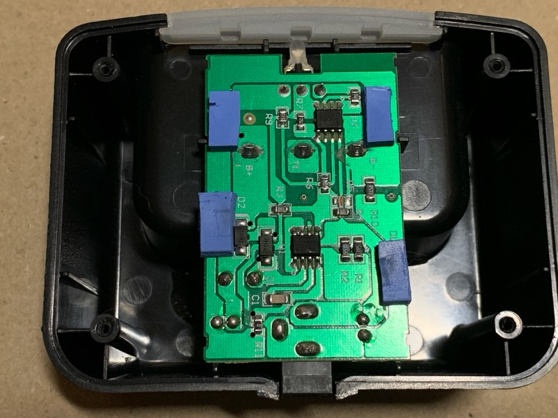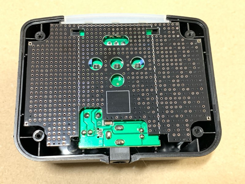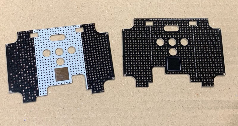 単純に両面ただの銅箔に大量のビア。放熱対象のICチップの部分だけは金属で、あとはすべてカバー。本来ならICチップの部分にこそビアを入れて裏面に熱を拡散すべきだろうけど、底板がプラスチックなので、そこが熱くなりすぎるのも良くないかと思って、敢えてその部分にはビアを入れていない。