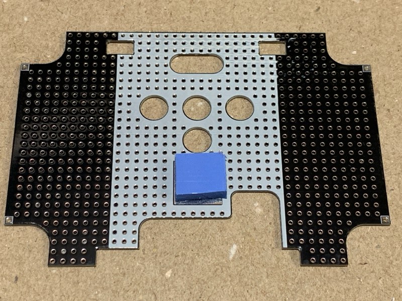 こんな具合に載ることになる。本当は全面を使いたかったのだけど、突起物(基板の反対側からささっている部品の足など)を避けるためにこんな格好になった。