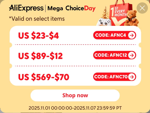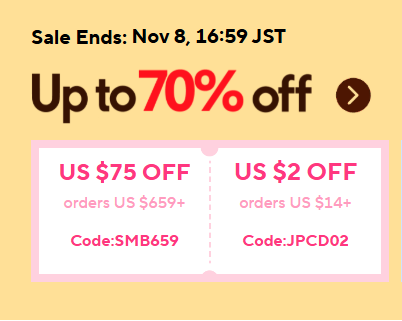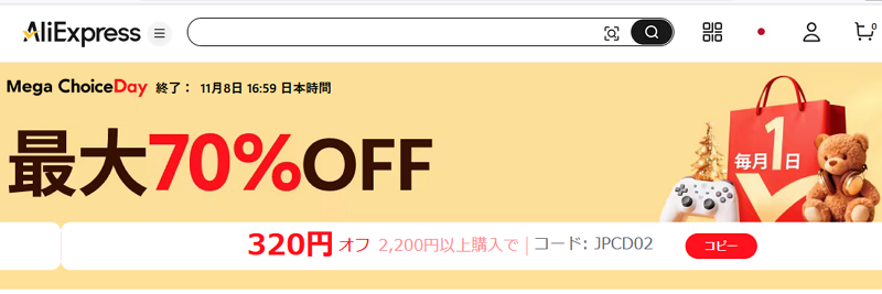 AliExpress、11月8日までセールをやっていて、割引クーポンも使えるようになっています。このクーポンがちょっとわかりにくい。見るページや言語設定によって出てくるクーポンが違ったりして。