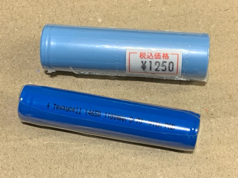 秋葉原で買った18650と14650。14650は、その呼称からわかるように、細身の18650。14650のバッテリホルダは見当たらないのだけど、18650のホルダにぴったり入る。