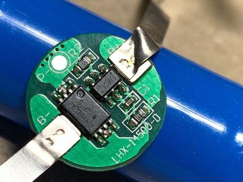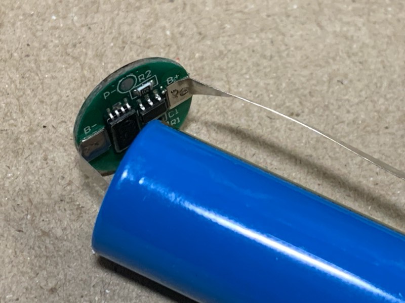 しかし、結局、その保護回路基板がタブでスポット溶接されている。これじゃ、店頭にあった「タブ付き」と同じだわ。あれはこうやって取り出して、保護回路基板をカットしたものなんだろう。