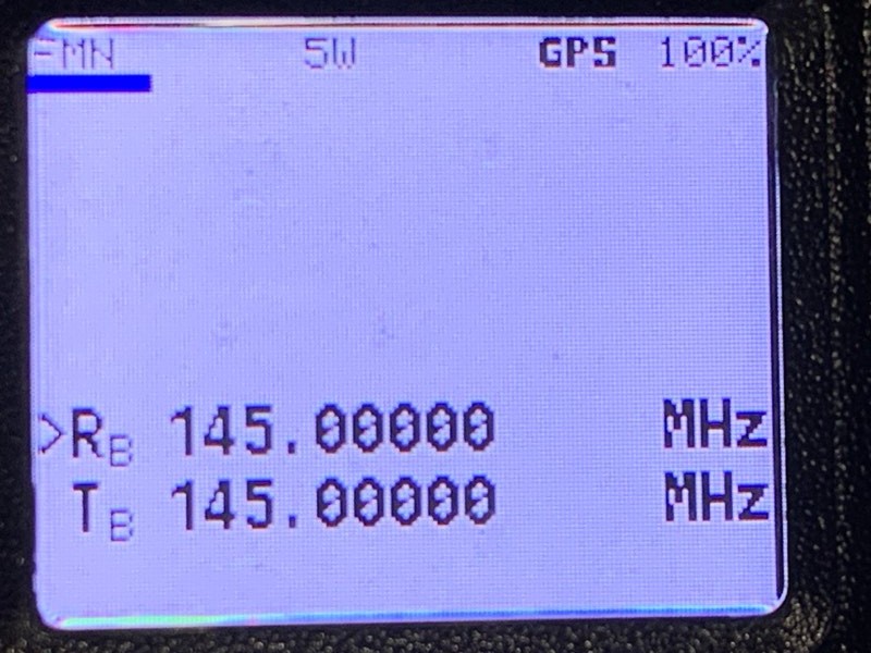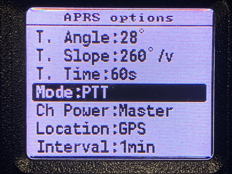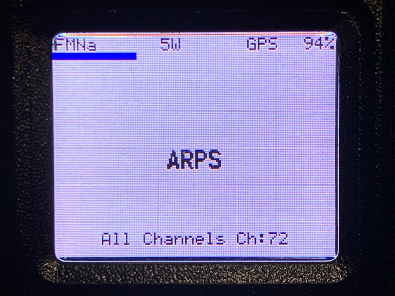 チャネルモードにして、APRS用のチャネルを選択する。あー、スペル間違ってるな。後で直しておこう。