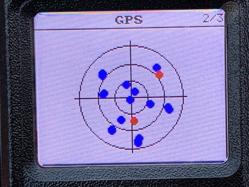 青がGPS(アメリカのGNSS(全球測位衛星システム))で、赤がBeiDou(中国のGNSS)らしい。色はCPSで自由に設定できる。これはデフォルト状態。