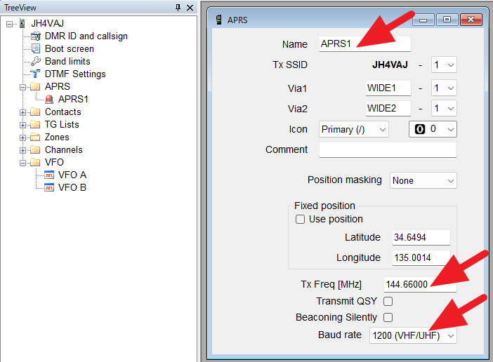まず、APRSの設定。